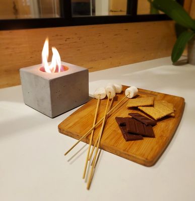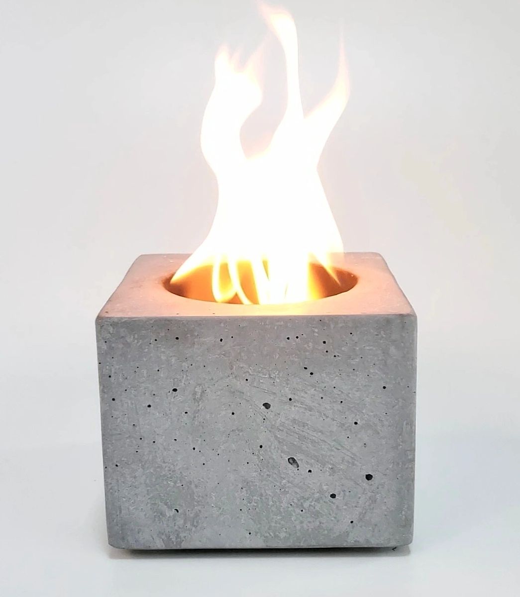Everyone is loving our tabletop Royal King Square Fire Bowl made from refractory cement! Just fill with isopropyl rubbing alcohol and light with a long lighter. No need for an insert as our fire bowls are made from high temperature refractory cement and guaranteed not to crack. It’s perfect for creating ambiance indoors and out and for even making s’mores. Every fire bowl is made by our skilled craftsman and may have small variations including air holes common with concrete, but that is what makes each fire pot unique. The Square Fire Bowl measures 5″ x 5″ x 4″ tall and is made from our high strength refractory concrete mix tested to withstand well over 2000 degrees with no degradation. Safely burns for up to 40 min and proudly Made in the USA!