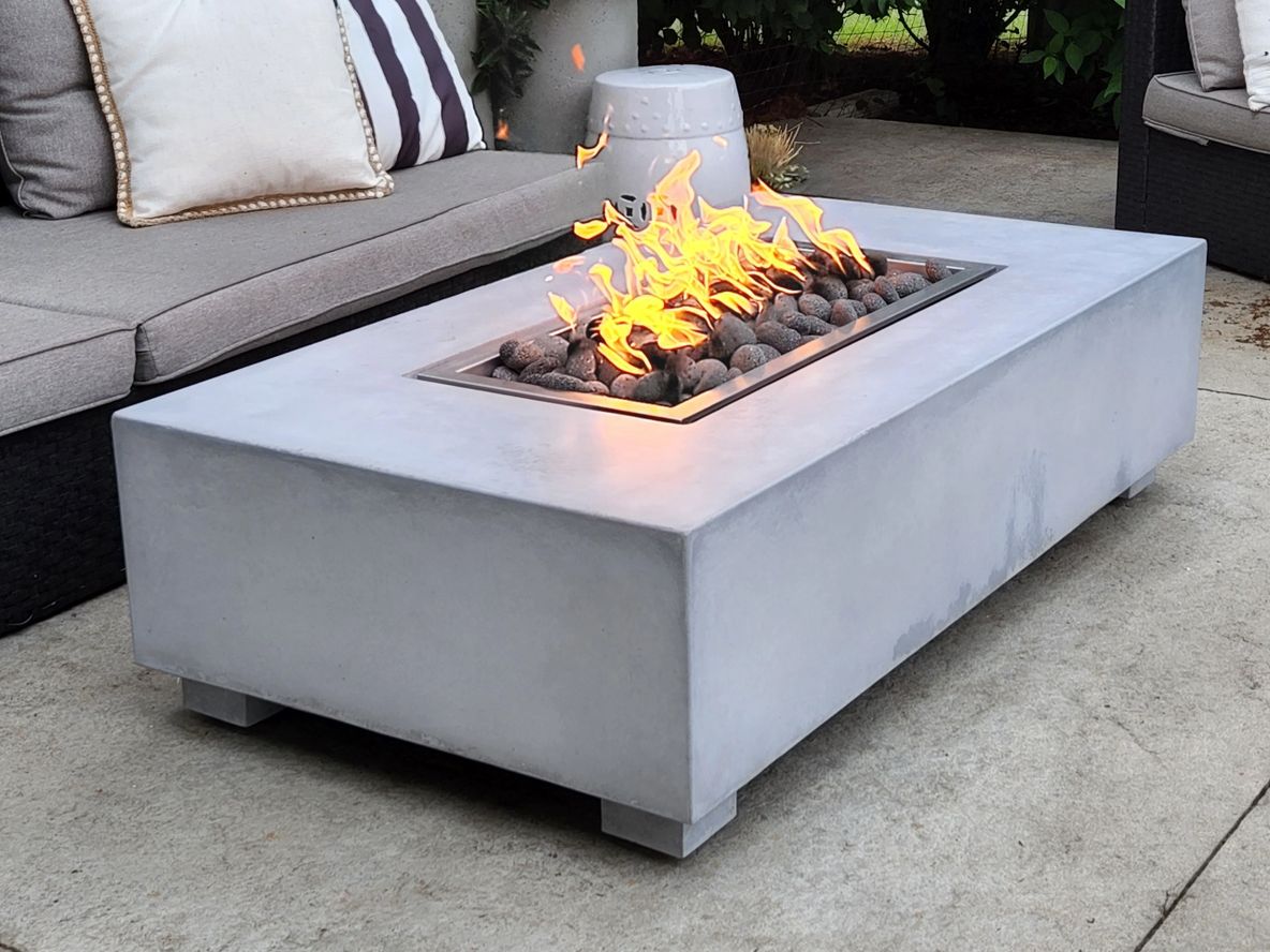 Your outdoor space is not complete without a Royal King Gas Fired Fire Table. Our stylish tables are constructed from high strength GFRC for years of enjoyment. We only use only high quality, 90,000+ btu burners that are 100% stainless steel and come with a Lifetime Warranty unmatched in the industry. The top is at the perfect height for resting your appetizers or cocktails while you enjoy the fire. Our fire tables are set up for direct gas hookup (either Natural Gas or LP). A small tank kit is needed if you intend on running the fire table from a 20lb propane tank. A tank will not fit under the table.